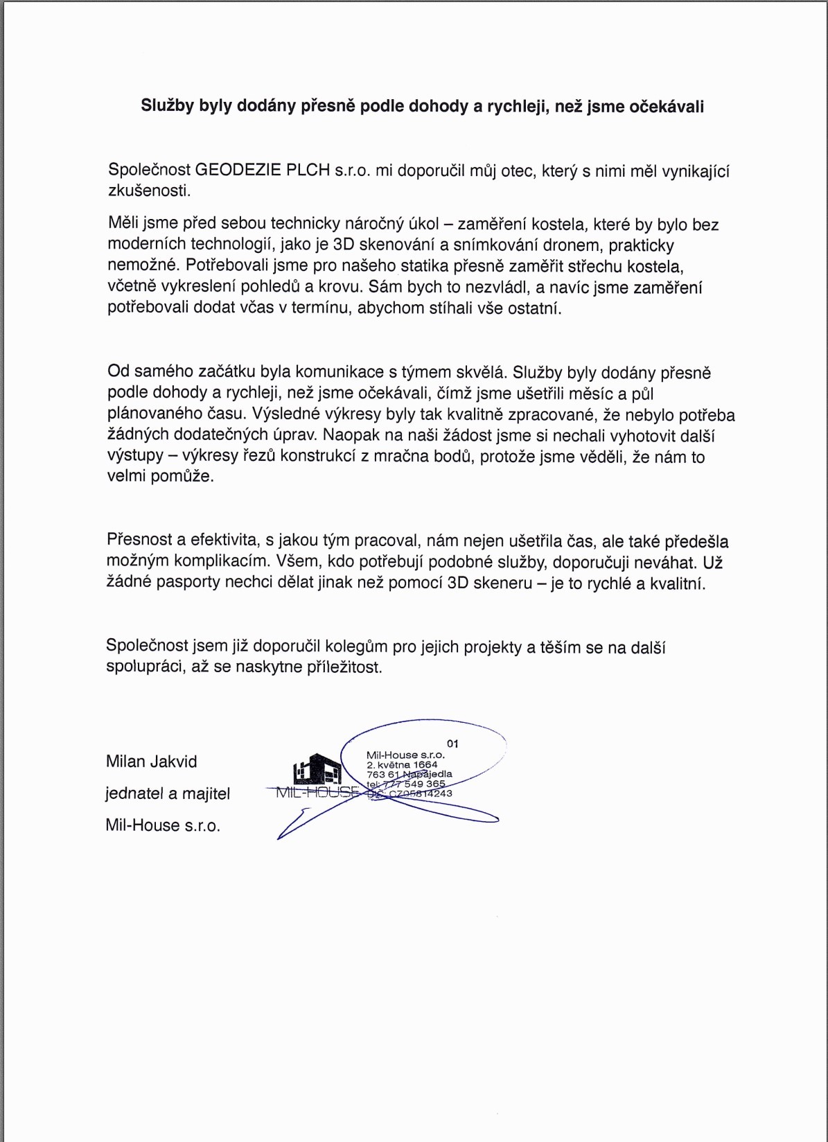 Společnost GEODEZIE PLCH s.r.o. mi doporučil můj otec, který s nimi měl vynikající zkušenosti.