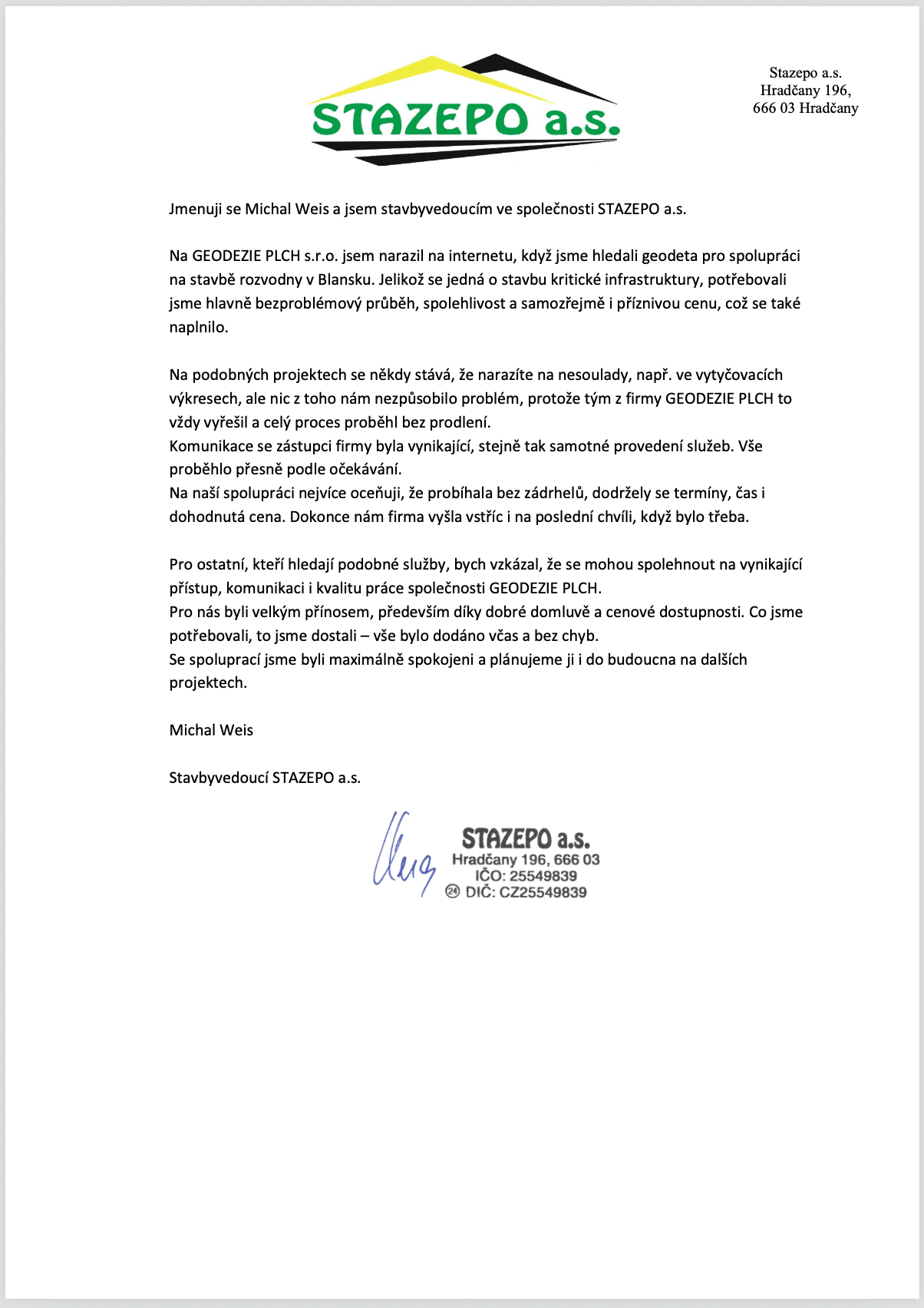 Na GEODEZIE PLCH s.r.o. jsem narazil na internetu, když jsme hledali geodeta pro spolupráci na stavbě rozvodny v Blansku. Jelikož se jedná o stavbu kritické infrastruktury, potřebovali jsme hlavně bezproblémový průběh, spolehlivost a samozřejmě i příznivou cenu, což se také naplnilo.